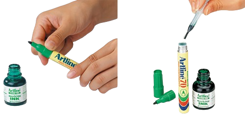 Refill ink for Artline 30, 50, 70, 90, 100, 107R, 109R, 110, 120, 130, 700, 710 xylene free refillable markers.